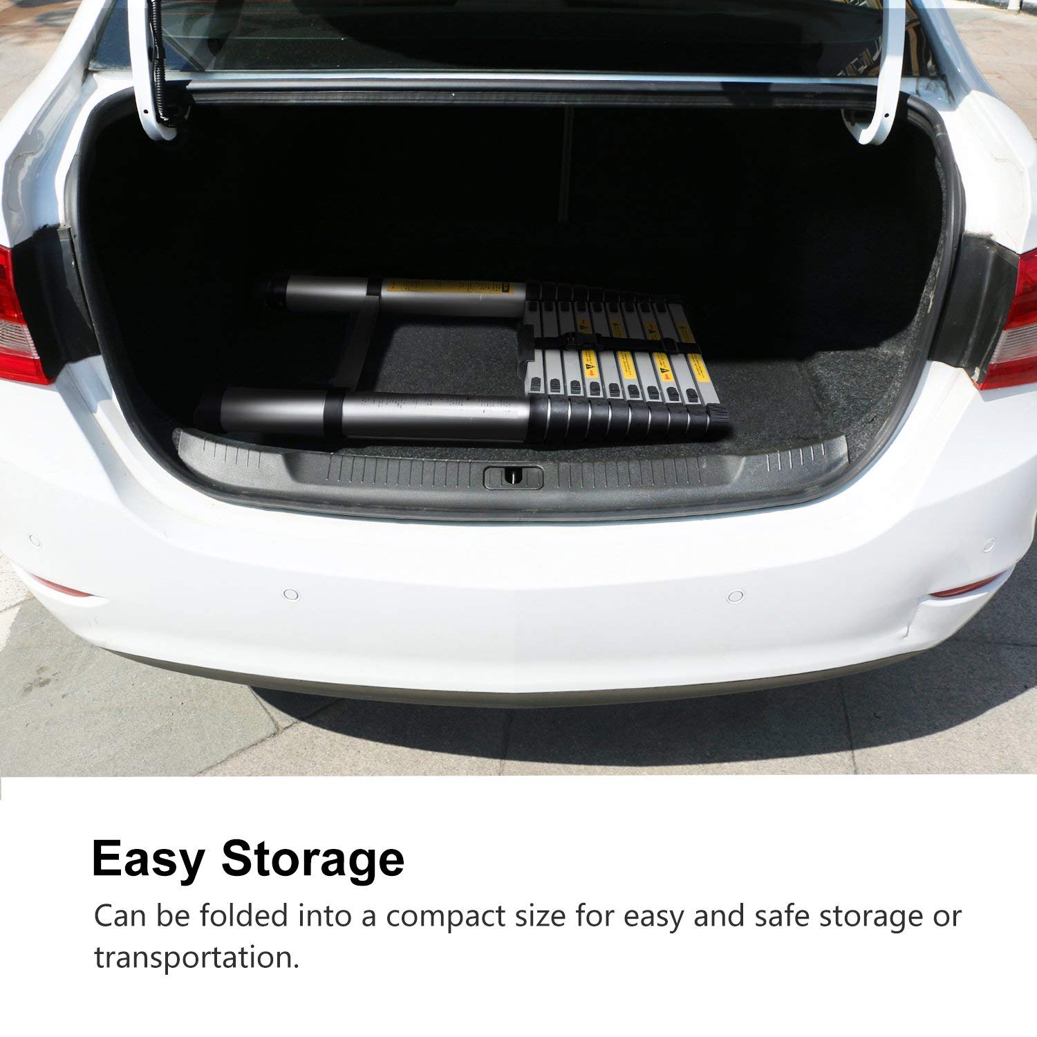 EASY PORTABILITY: At its full length of 10.5 feet, this telescoping ladder retracts to a quarter of its height for easy storage in your car or other limited space.