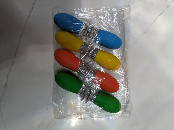 Good quality corn handles, work well and a good size to hold. Nice bright colours, easy to clip together