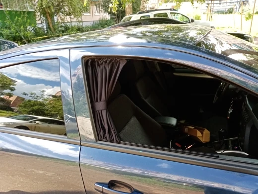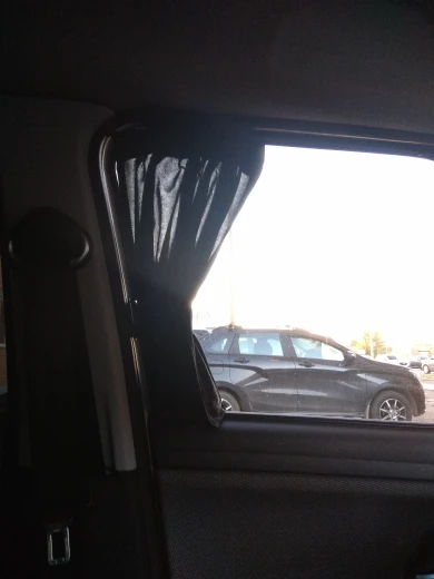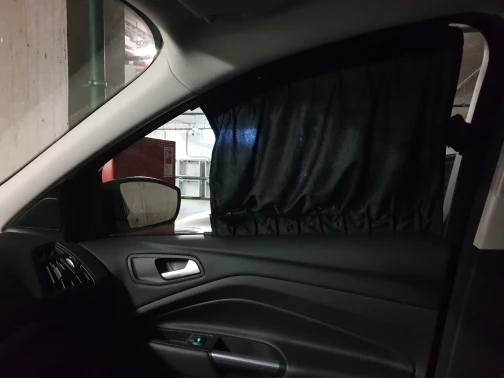Took on Ford Kuga, mainly for children after installing the screens on the headrests, for I am ambiguous about toning. I took 2 sets, because I wanted to put them on the front windows. Well, it's okay. In front of the road from the side sun will protect. Behind the top guide you need to trim centimeters by 5 due to the bending of the surface. Instructions are not included, there were extra parts-hooks such, XS where they are. Seller, post the instruction!