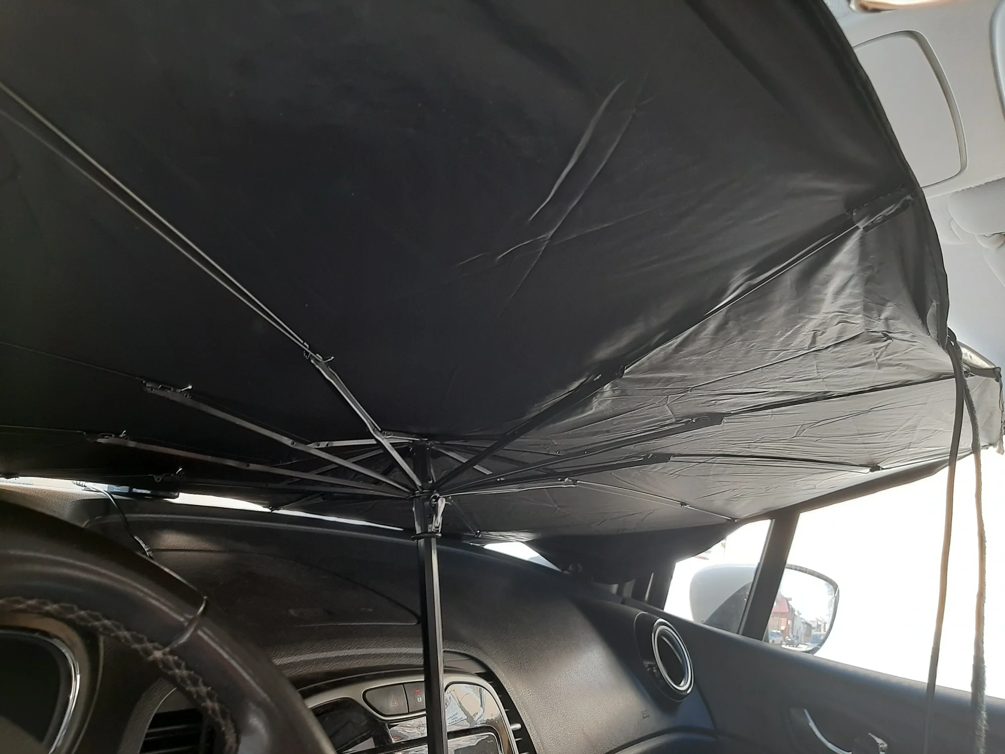I wanted to buy one for a long time, but it was my own fault-I didn't calculate that none of these was suitable for my car. The mirror is very disturbing and cannot be bypassed. As a result, the umbrella does not fully perform its function.