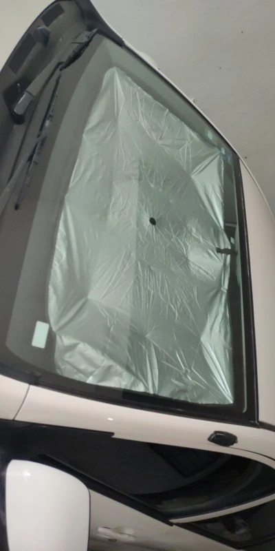 This car windshield umbrella uses high-quality aluminum foil material to block a lot of heat and reflect sunlight, which can effectively reduce the temperature inside the car and prevent damage and aging of the car interior.