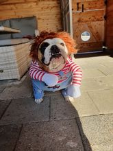 Very cute. I had a size M ordered for a French bulldog, the "legs" were still slightly too long but this I could easily coiling. Awesome!