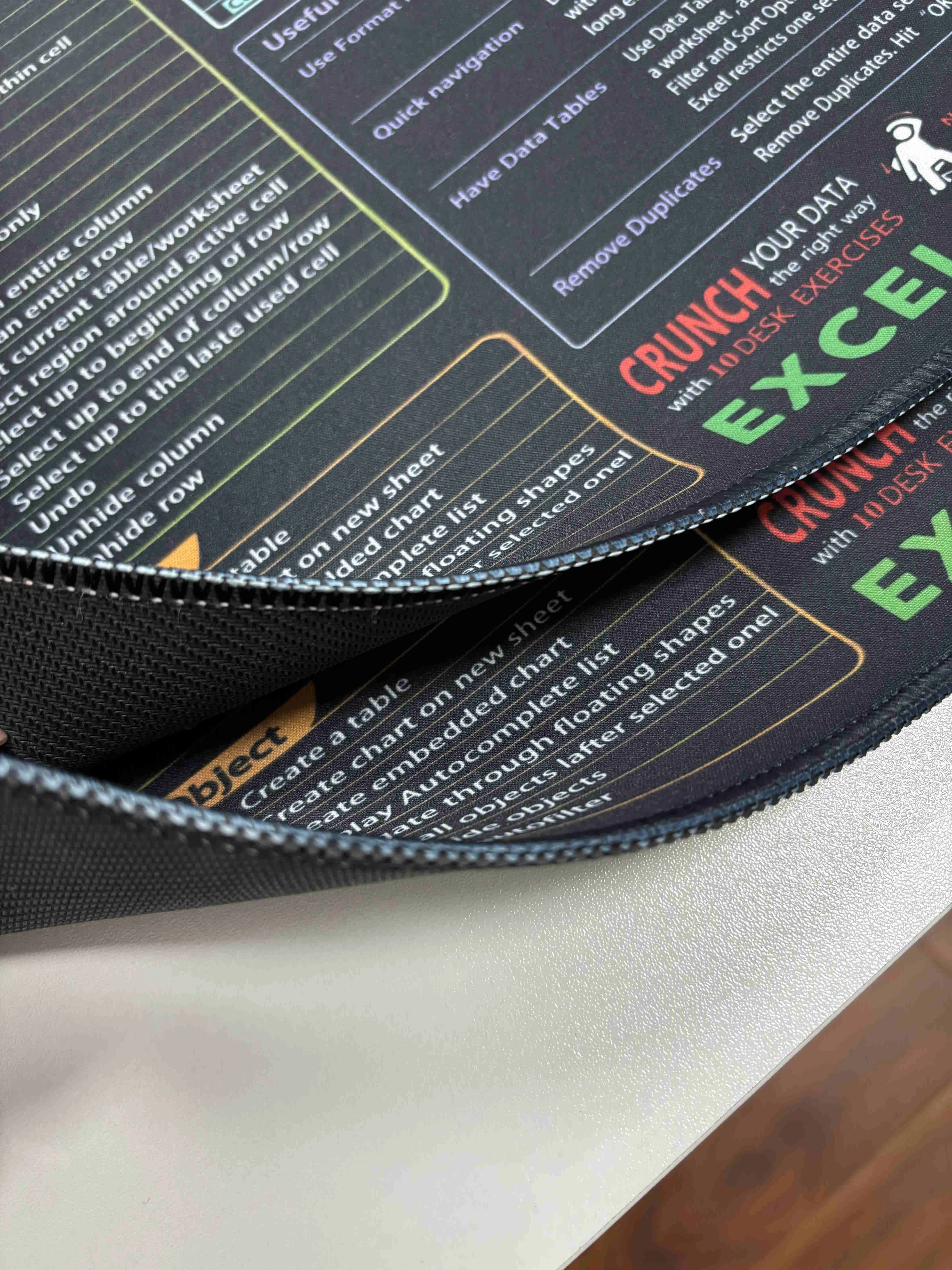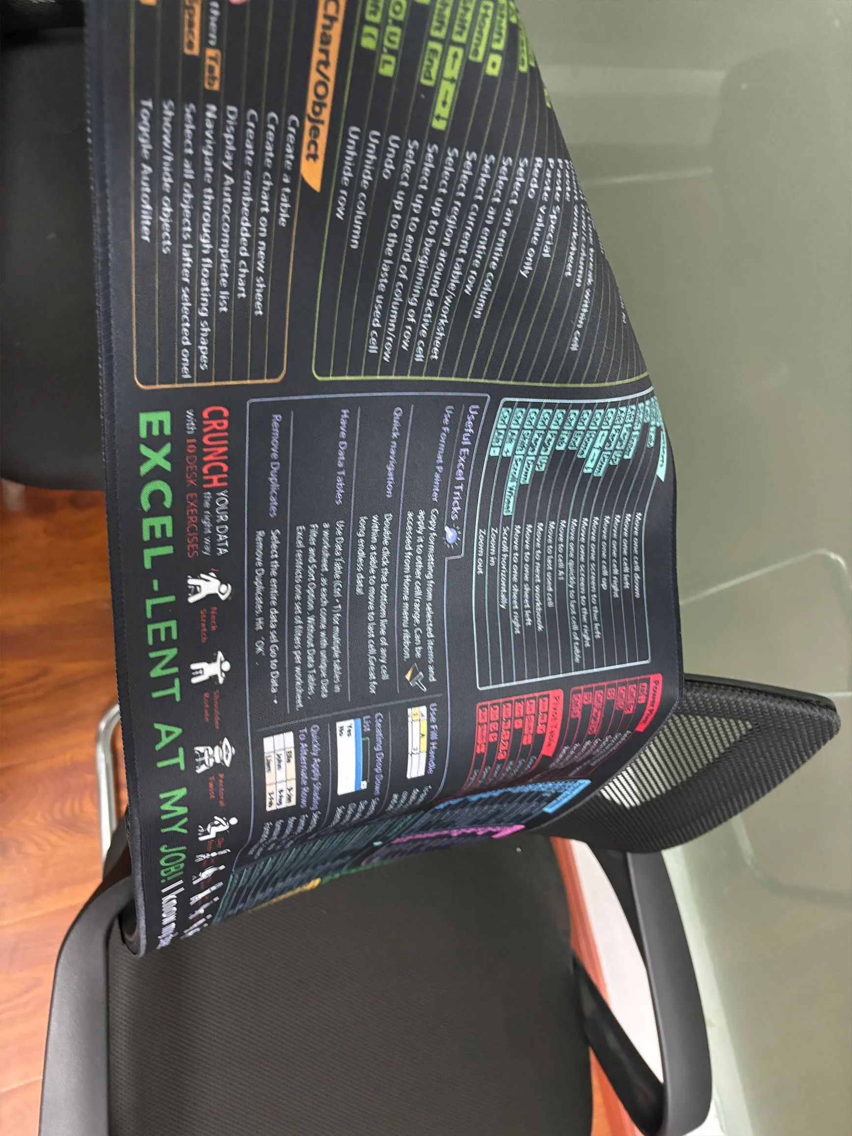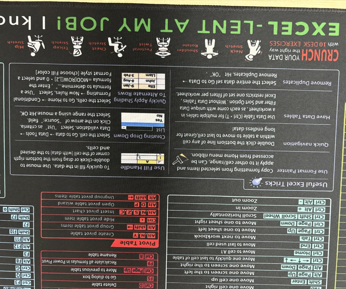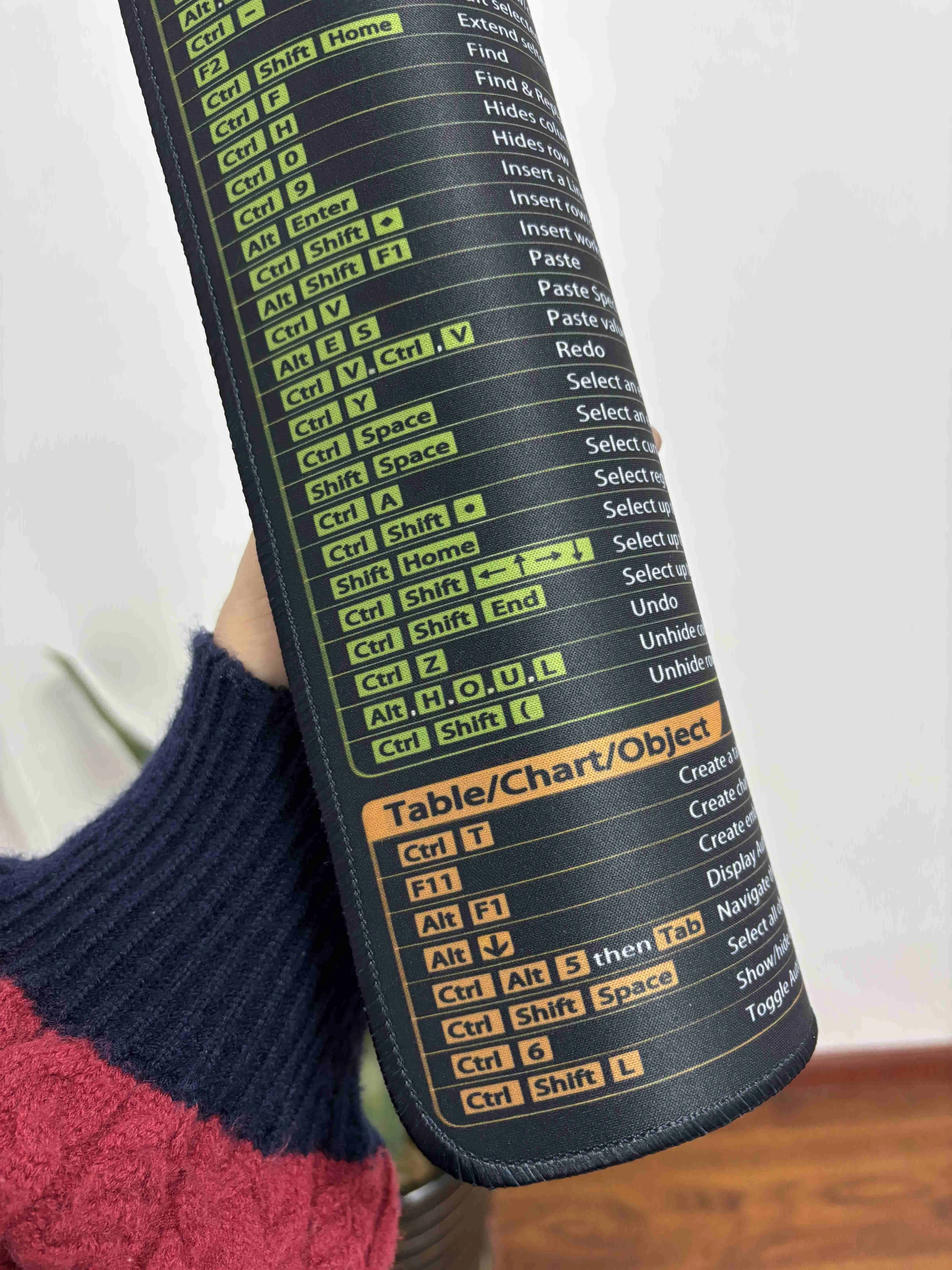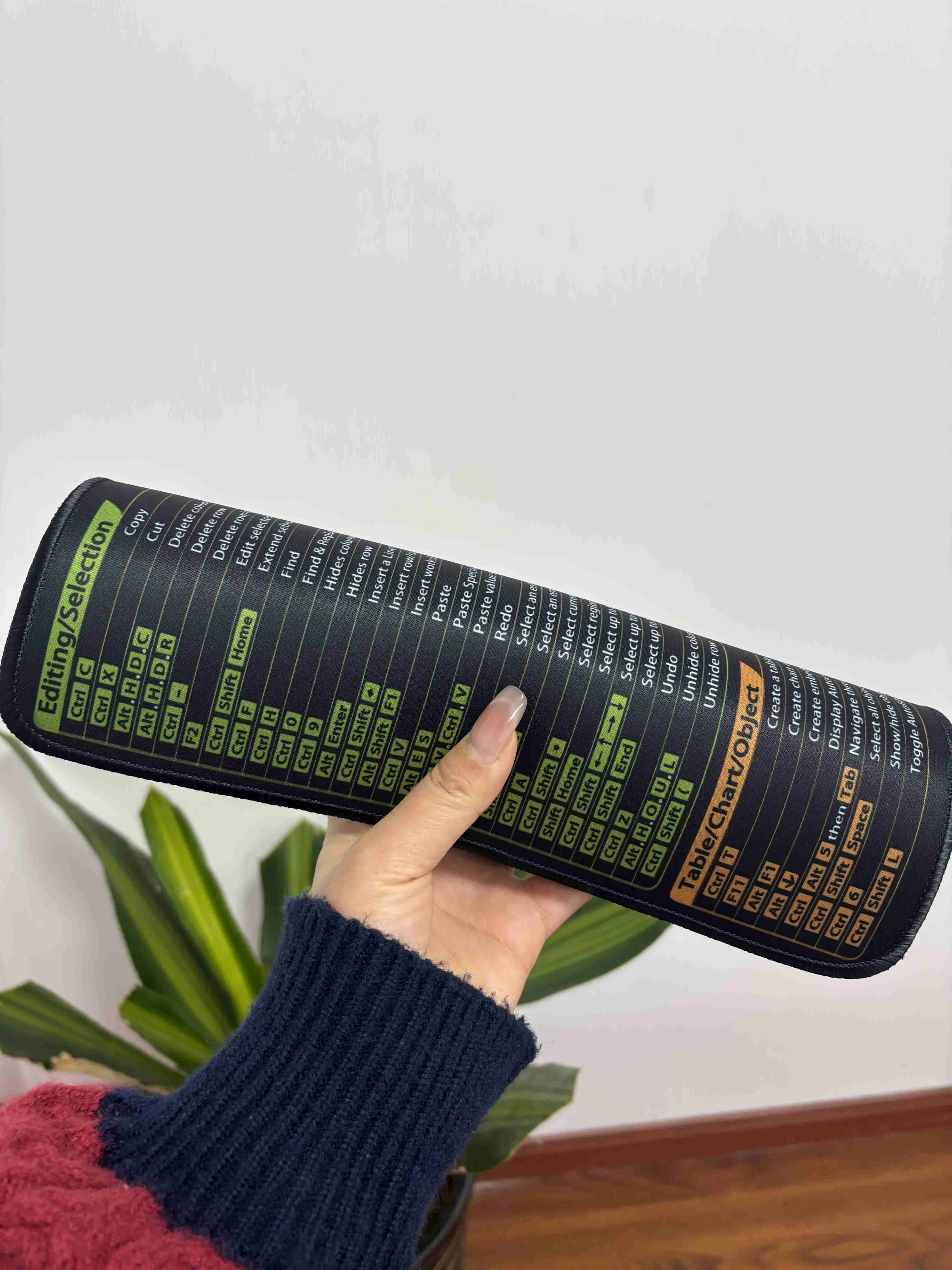 I absolutely love this excel shortcut mouse pad, although its much bigger than a standard mouse pad. Its great having all of this information right next to me while I work and Ive already consulted it several times. The quality is great and it has just enough grip on the back of it to keep it in place when I work.