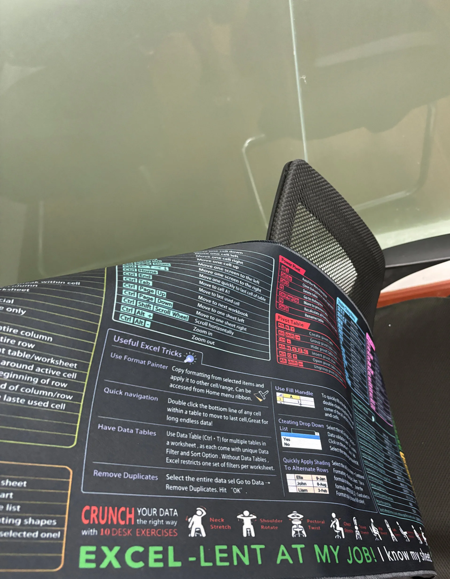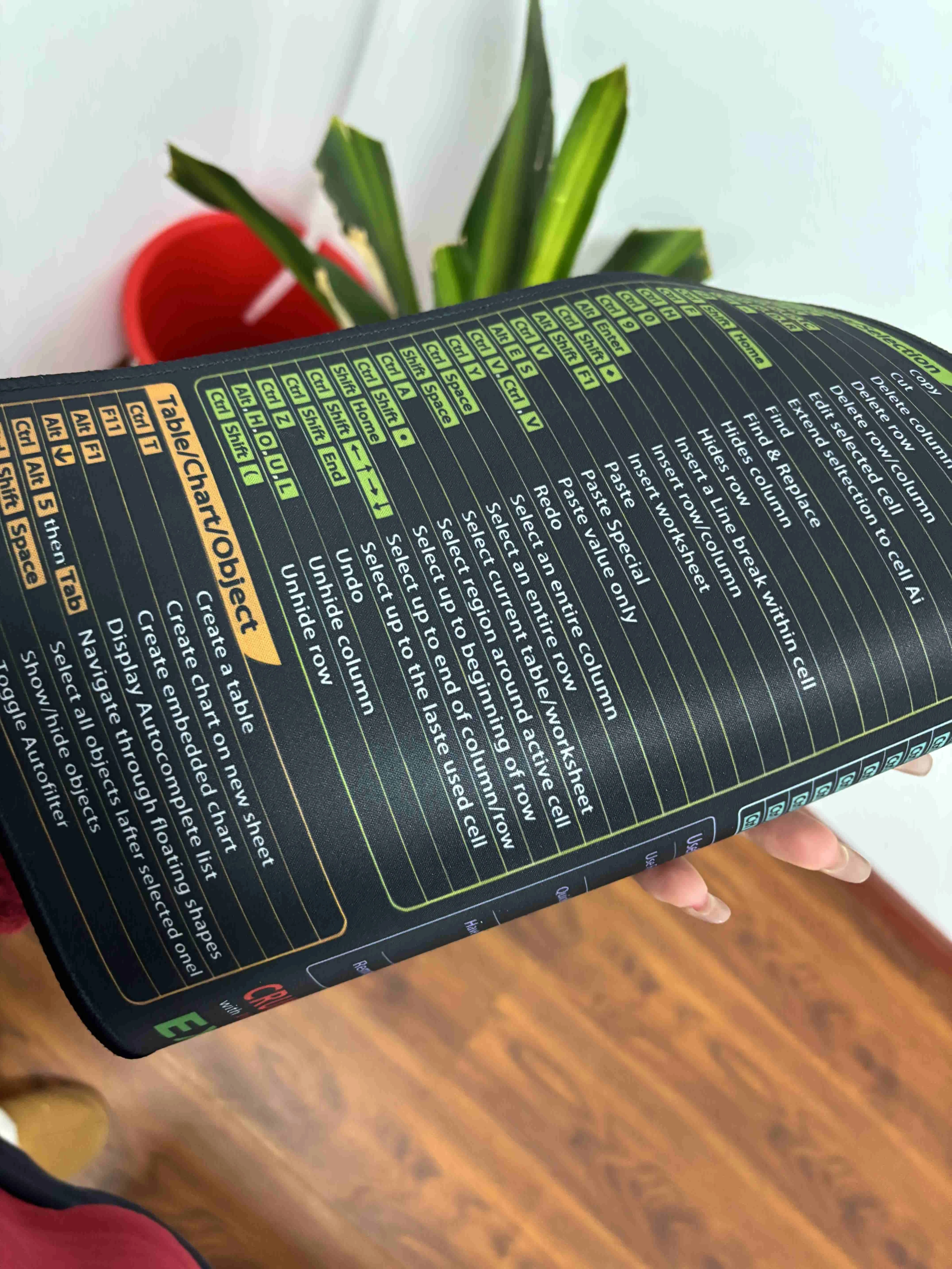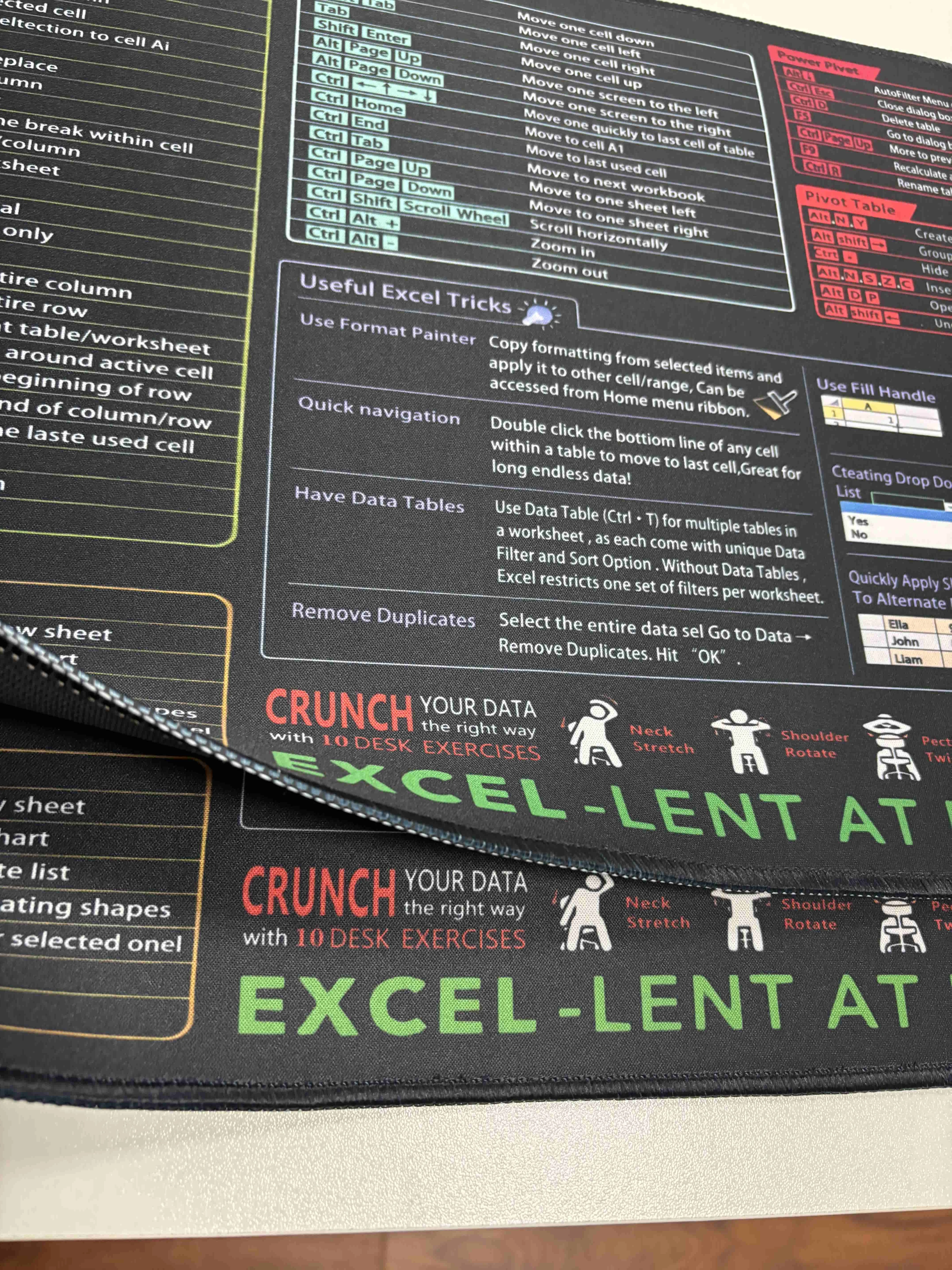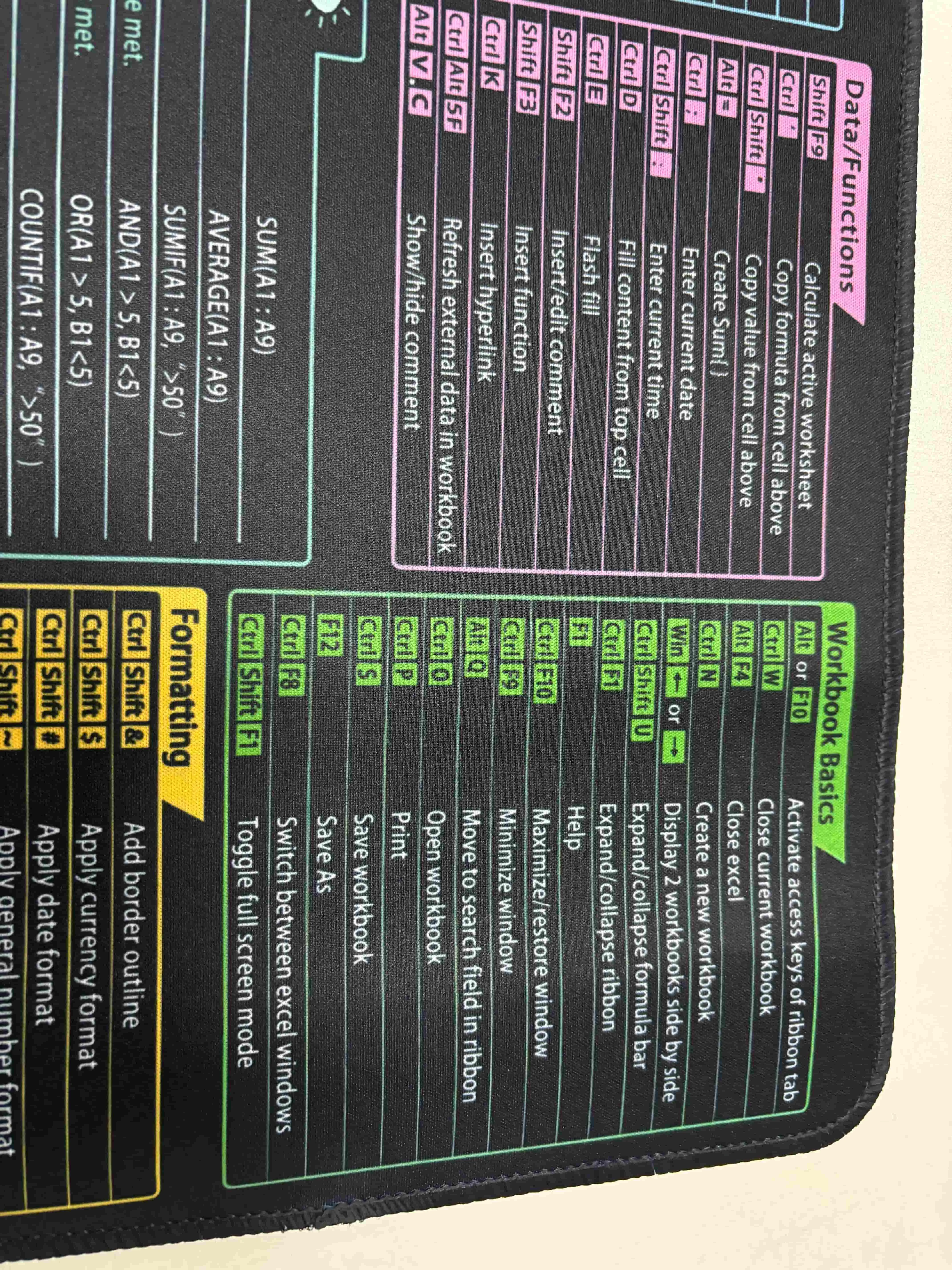 I absolutely love this excel shortcut mouse pad, although its much bigger than a standard mouse pad. Its great having all of this information right next to me while I work and Ive already consulted it several times. The quality is great and it has just enough grip on the back of it to keep it in place when I work.