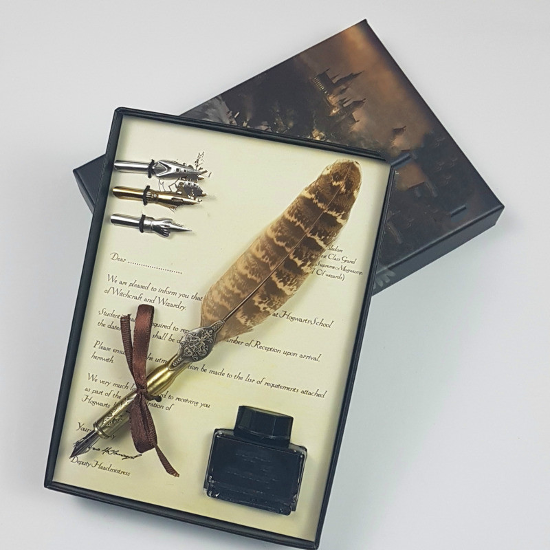 Have you ever admired the characters in the Harry Potter movies when they were written with vintage feather pen? Now you can fulfill your wishes with our vintage feather pen. This is a feather dip pen set with 3 dip pen nips, satisfy your multiple writing purpose, it’s made of natural feather, comfortable to hold. The design of the product is extremely simple, but still does not lose the elegance with the feather and the metal handle linked together. When using it, you just dip the ink and write, like your favorite movie scene. Not only adults but also children will love writing with this pen. It will be a great gift for your friends. Buy it now!