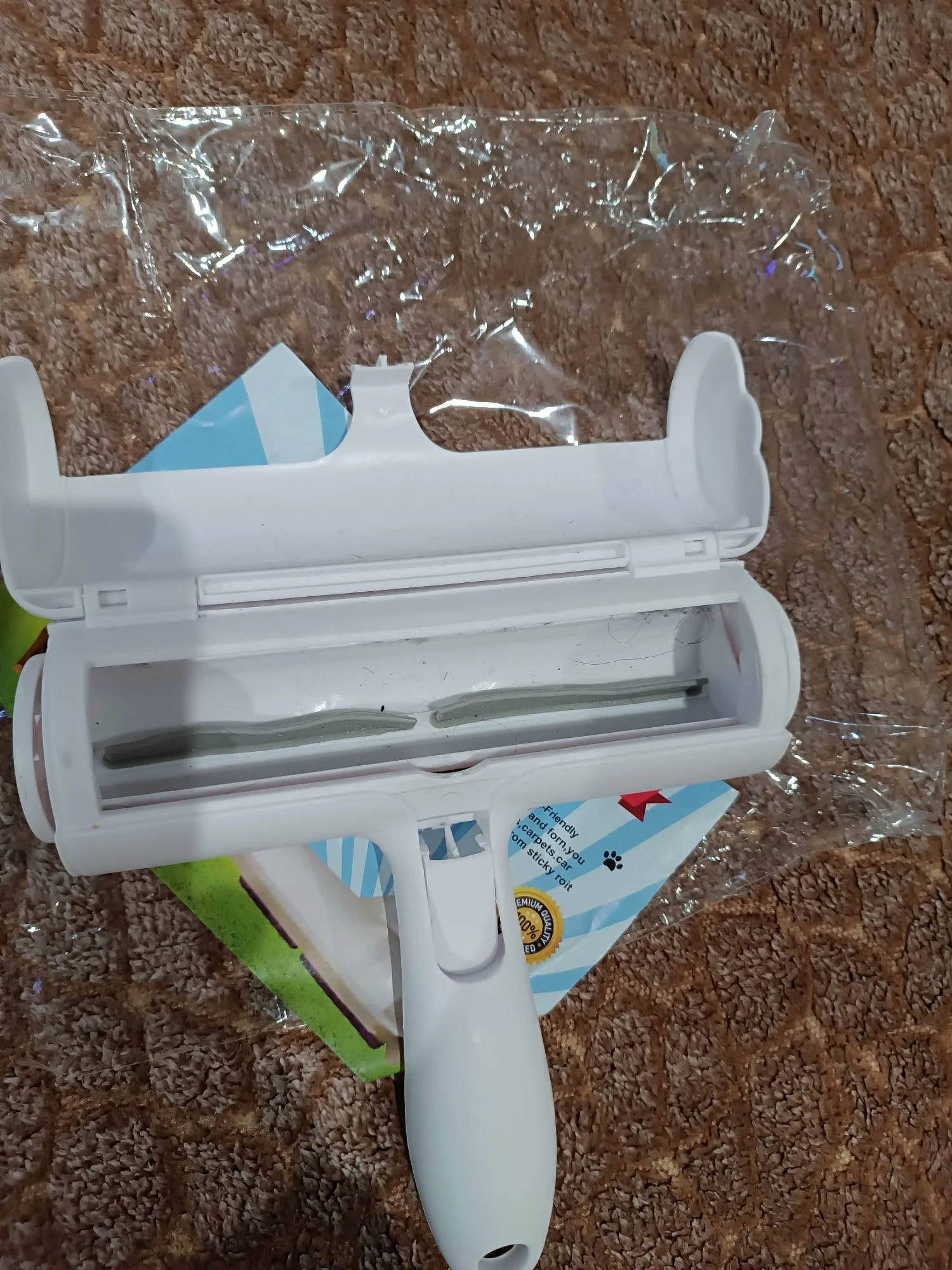 Fast delivery to Australia. A must have product for cat owners and I have 3 cats. Back and forth motion on the couch removed cat hair and top has opening to empty out hair.