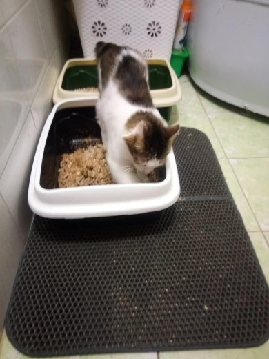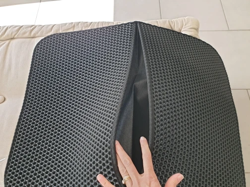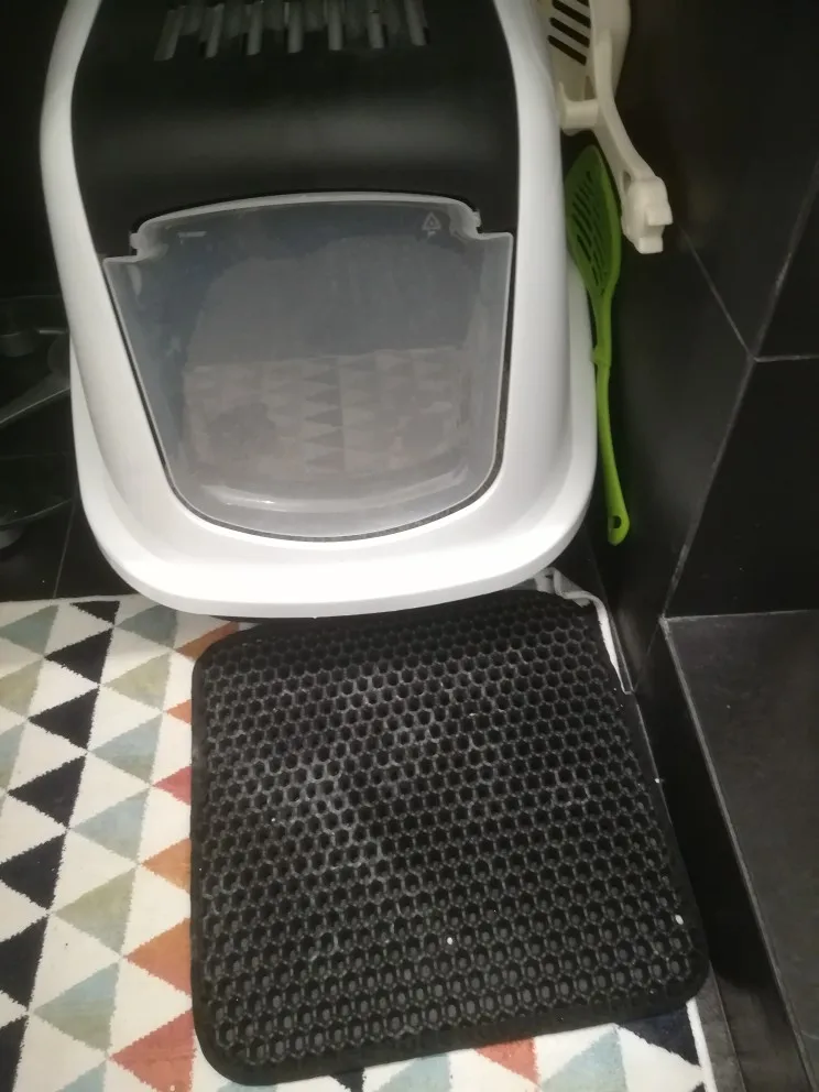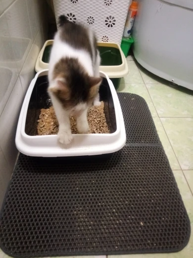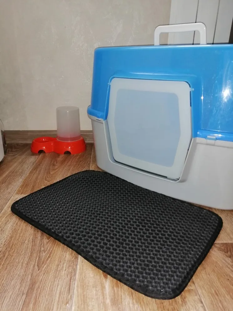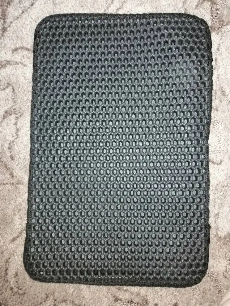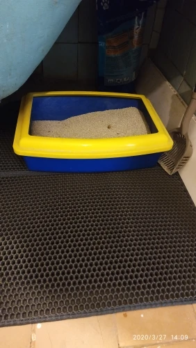 Finally came the mat! Long waited for it, I do not even remember when I ordered it! RB! The mat is good, sewn soundly, the cells are large, just for our filler (silica gel), already put next to the tray, the cat approved!