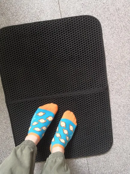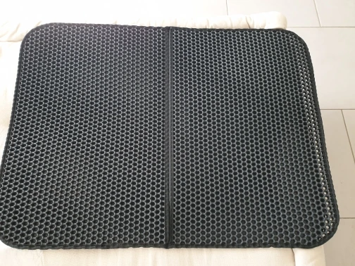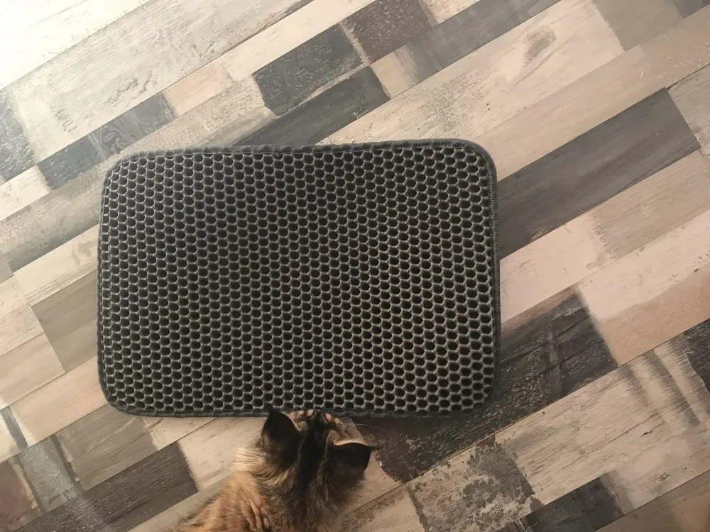 Introducing Litter Locker Cat Mat. The double-layer mat effectively catches litter from the cat’s paw through the honeycomb pockets. Which less mess, means less time spent cleaning. The material is urine-proof, waterproof, odor and stain-resistant. This mat will keep your cat and your house clean. It is also made of high-quality EVA foam rubber, which is non-toxic and eco-friendly.