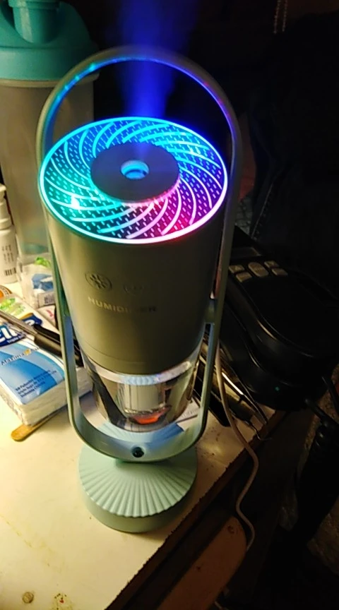 Super cute mini humidifier! Mist is thick enough to keep air moist and the LED lights make it beautiful.