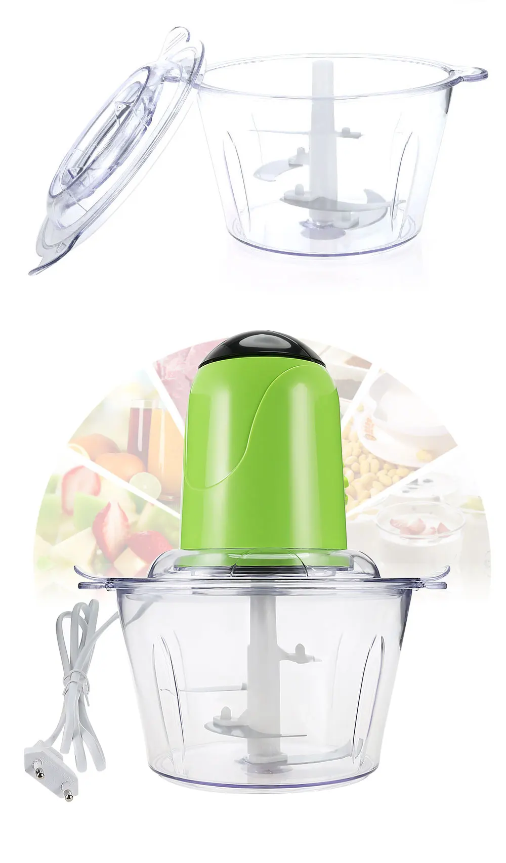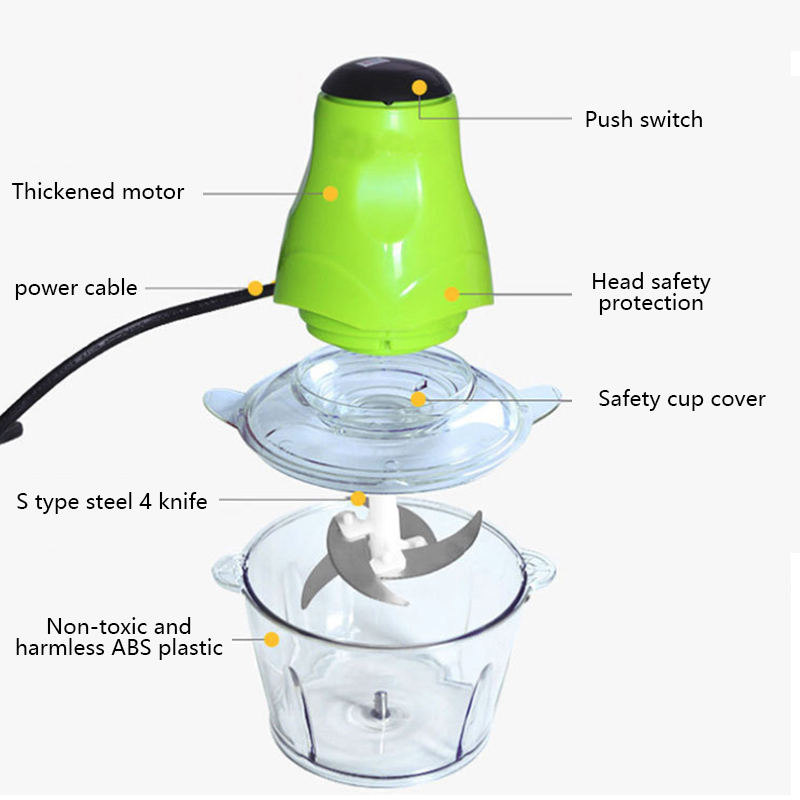 – Safe: with it, you have no need to use the kitchen knife. Just press the button and the food can be chopped in several seconds