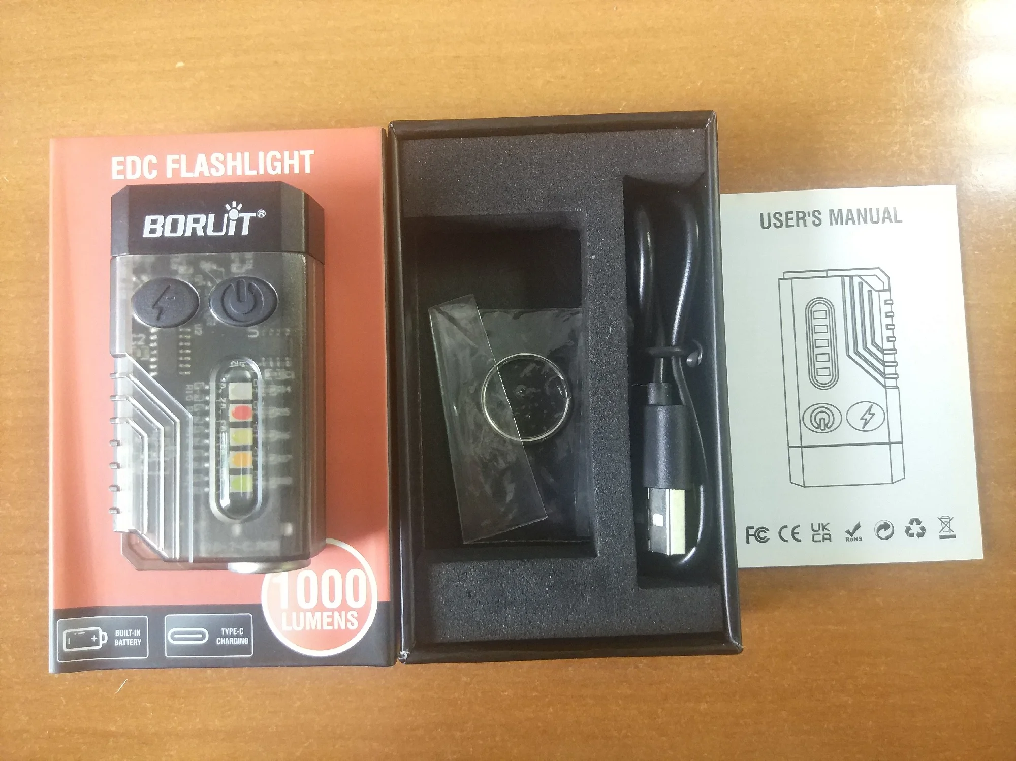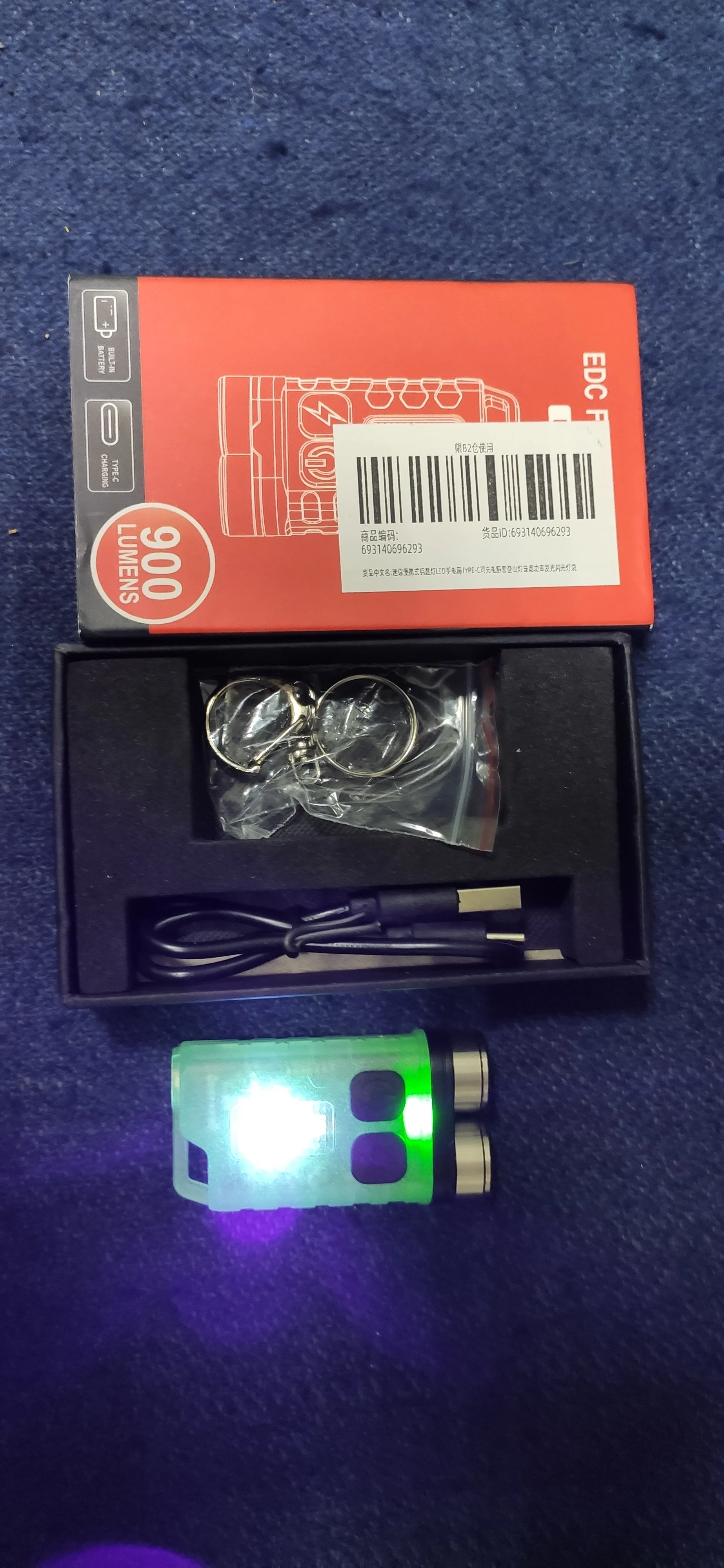 EDC flashlight using USB C fast charging, up to 2.5 hours of use in the brightest mode