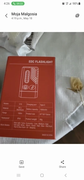 Ordered 2 more pieces to friends for gifts. Friends are also delighted. I really liked the ultraviolet light. I have never met this in combined flashlights. The seller is sociable. I recommend it.