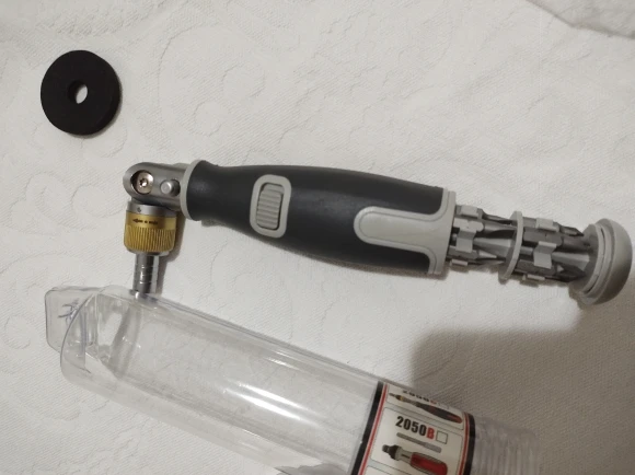 The package has been delivered, works well is a little heavy, the head for screwdriver tips is like metal, aluminum, arrived protected. It seems to be of quality, it fulfills the functions like the announcement, I like the rattle of this screwdriver, a great help to tighten or extract screws with its selector knob, it also brings the function to use without a rattle as a normal screwdriver, it also doubles in lever to help, hopefully it is durable, good purchase.