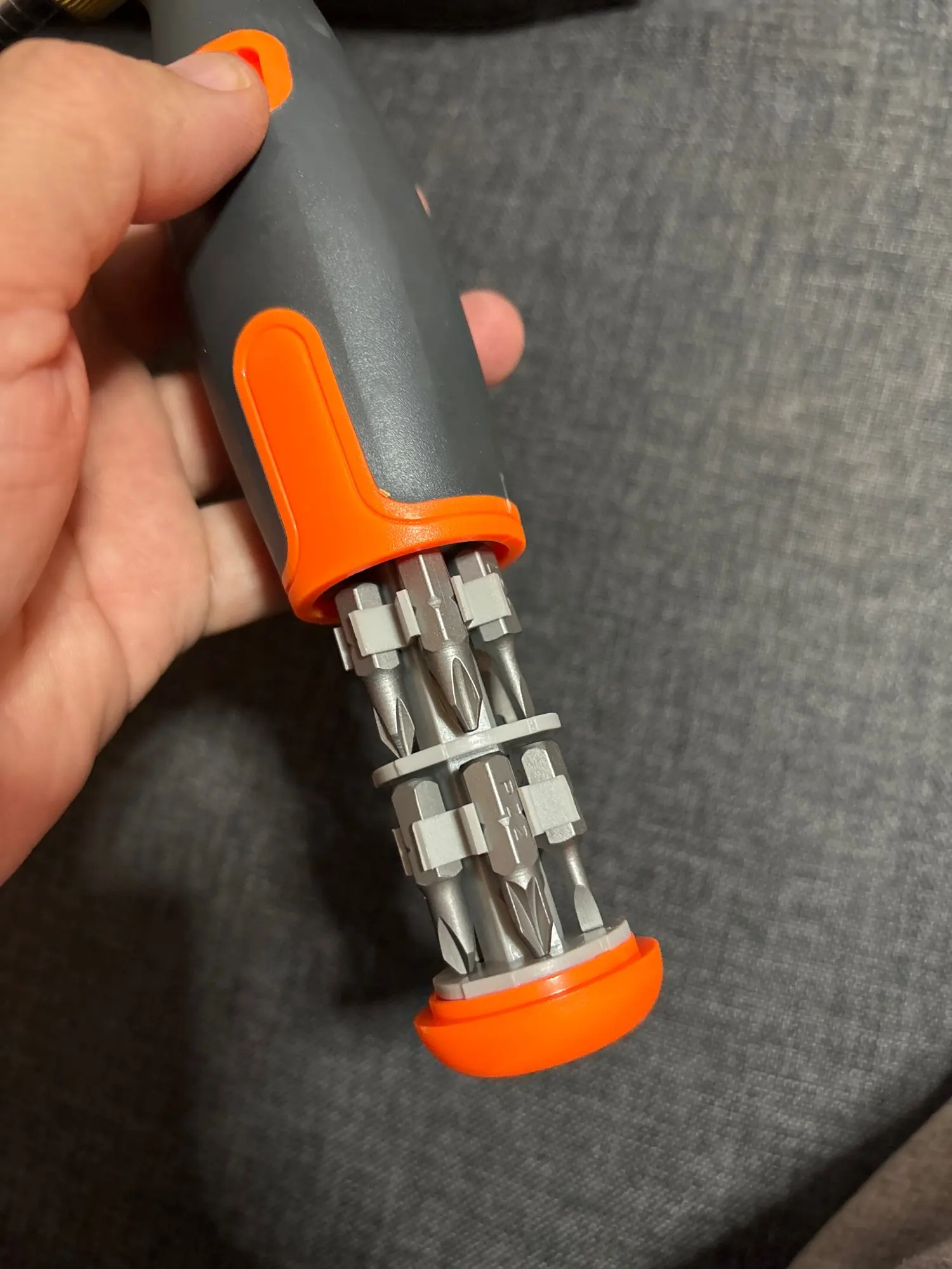 item as described. there are screwdriver bits in the back/handle portion