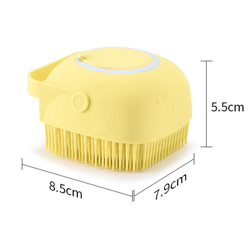 First, squeeze slightly and the shampoo can easily come out, then use the dog shower brush scrub away dirt, remove dead skin and loose fur, bring your dog a very comfortable bath and massage soothing effect