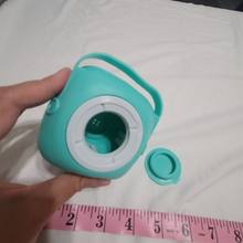 Product is accurate!!! It’s palm size and the brushes on it are very soft and good quality ! Also it’s squeezable and the opening on the top is removable so the shampoo and form with the water so far I’m very happy :)
