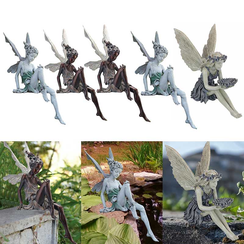 A beautiful garden always has guardian spirits. Let’s add a magical effect to your garden with this Sitting fairy statue. The product is made from a high-quality polyresin, water-proof and drop-proof, the color will not fade after long-term use. The fairy sculpture has a pair of beautiful wings and sits somewhere with her hands on the ground. Her eyes were closed gently, maybe she was tired and needed to take a short rest. This is a gentle beautiful ornament that makes your garden look magical and lively. With your beautiful flowers surrounding the garden, this ornament will add to the enchanting vibe. Buy right now!