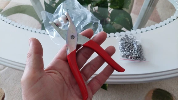 Put the hollow prong rings on the pliers lower side without-hole and the male and female snaps on the pilers’ upper side with hole.