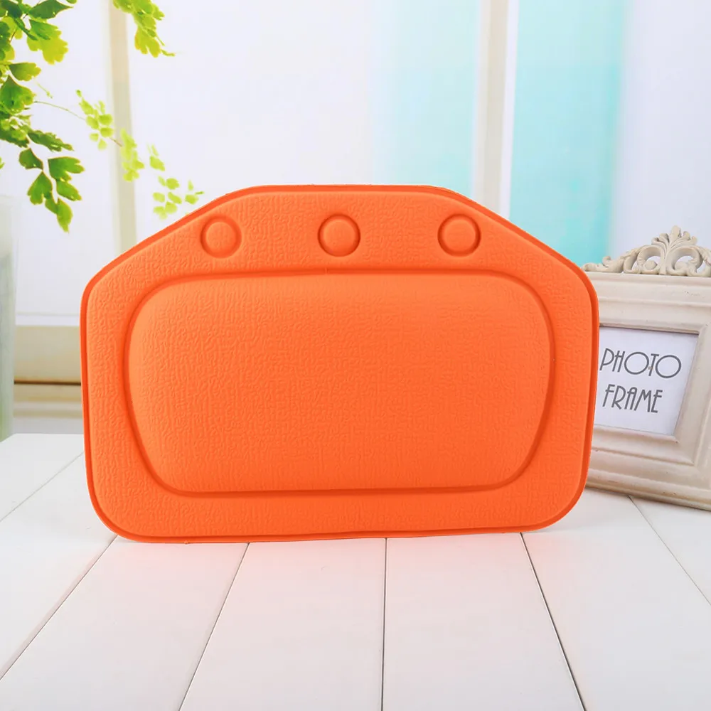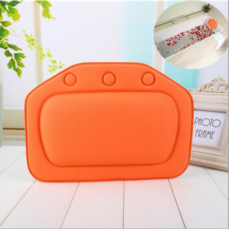 Suction cups on back of pillow stick to bathtub walls