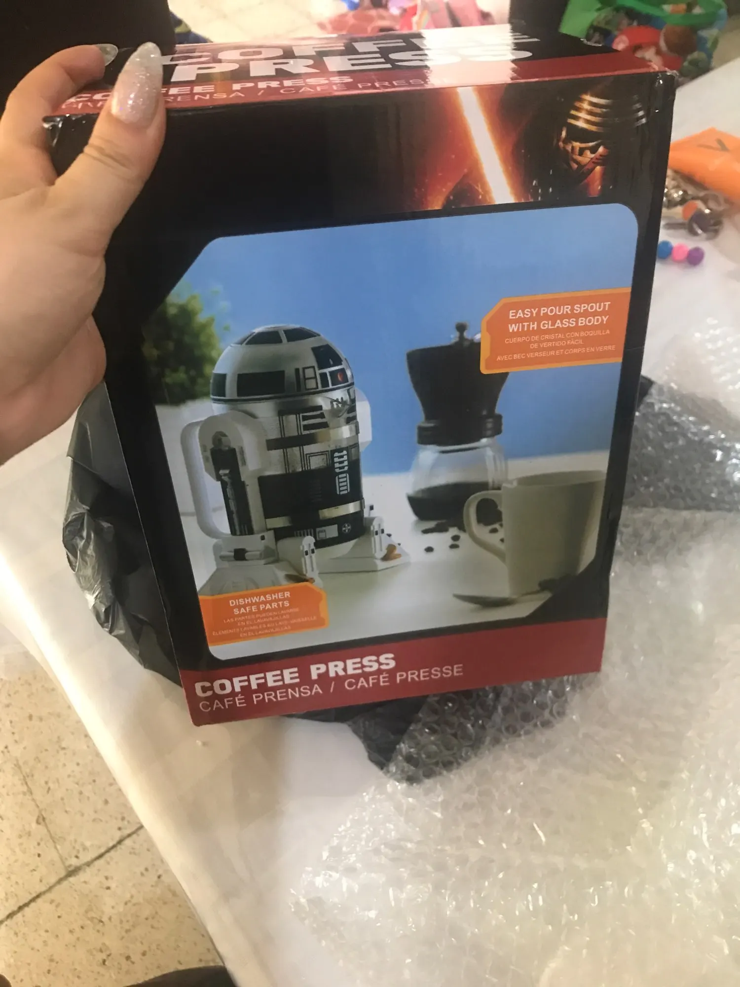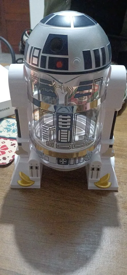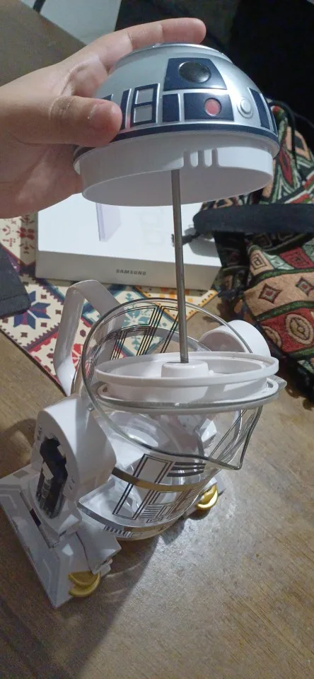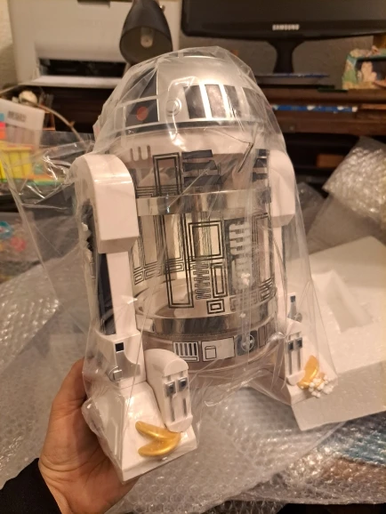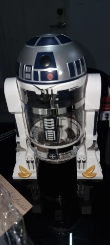 It's great. I who am not a fan of star wars would like to keep it because I love it; But it is for gift and he will surely love it. It is very well packed with unicel and bubble plastic. The body is glass metal press and the outer parts are plastic. The size is as the product image. I would certainly buy it again. It arrive much earlier than I expected. It is the first time I buy online and I have a good experience with this store.