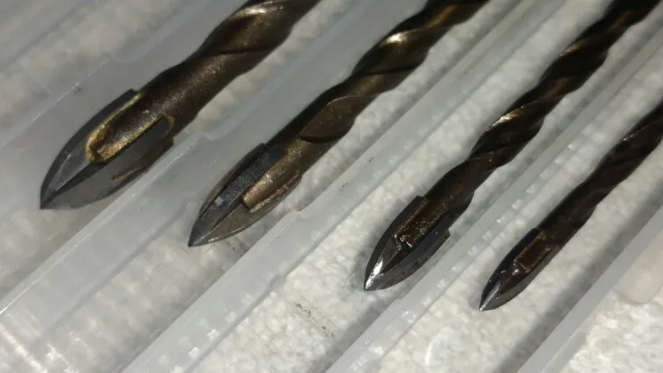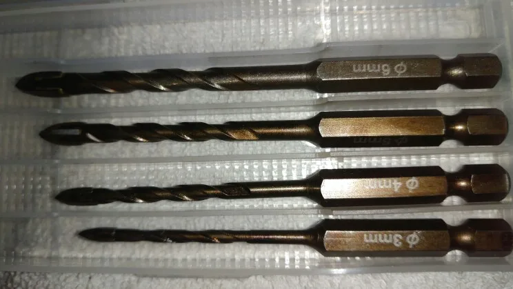 Professional glass and tile drill bits provide smooth and accurate drilling in ceramic tiles, marble, thin iron plates, mirrors, and glass. Remember to add water or coolant when drilling.