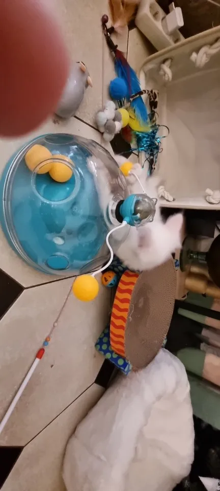 Such as the photo, it is a fairly basic toy, it does not have batteries, it only depends on the activity that your pet has. For example, I have two cats, one is very calm and the other is an earthquake and he loves balls, so he has really enjoyed taking out the balls. The shipment is correct in time and form, it comes in a plastic bag coated by bubble wrap.